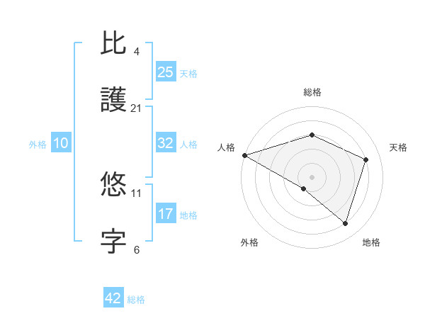 比護 悠字さんの天格は25画の4点!