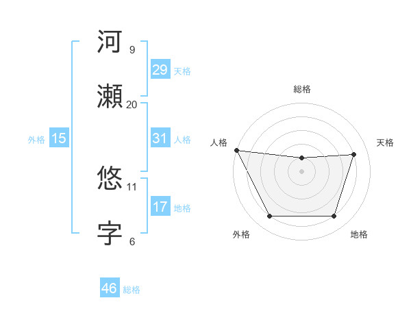 河瀬 悠字さんの天格は29画の4点!