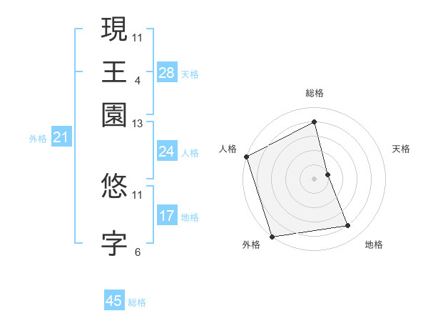 現王園 悠字さんを姓名の画数から五運を鑑定