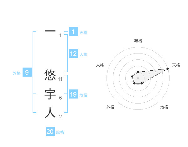 一 悠宇人さんを姓名の画数から五運を鑑定
