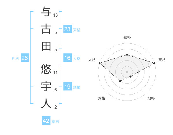 与古田 悠宇人さんを姓名の画数から五運を鑑定