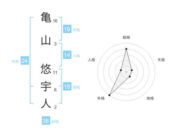 亀山 悠宇人さんを姓名の画数から五運を鑑定