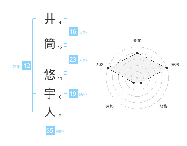 井筒 悠宇人さんの総格は35画の4点!