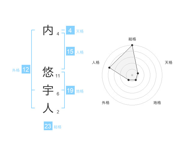 内 悠宇人さんの総格は23画の5点!