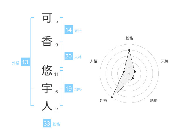 可香 悠宇人さんの外格は13画の5点!