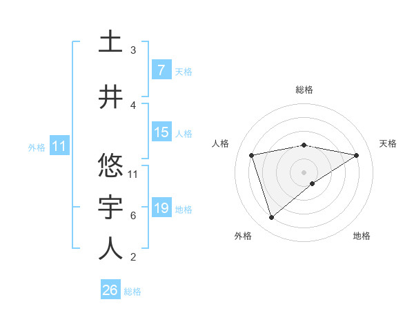 土井 悠宇人さんを姓名の画数から五運を鑑定
