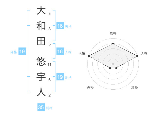 大和田 悠宇人さんを姓名の画数から五運を鑑定