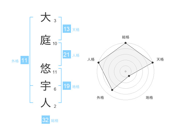 大庭 悠宇人さんを姓名の画数から五運を鑑定