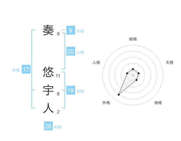 奏 悠宇人さんの総格は28画の1点!