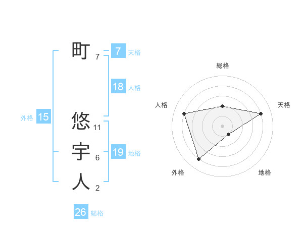 町 悠宇人さんの総格は26画の2点!