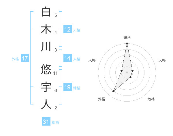 白木川 悠宇人さんを姓名の画数から五運を鑑定