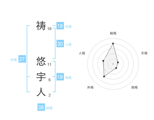 祷 悠宇人さんの総格は38画の4点!