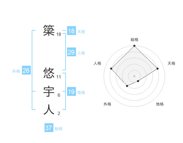 簗 悠宇人さんの総格は37画の5点!