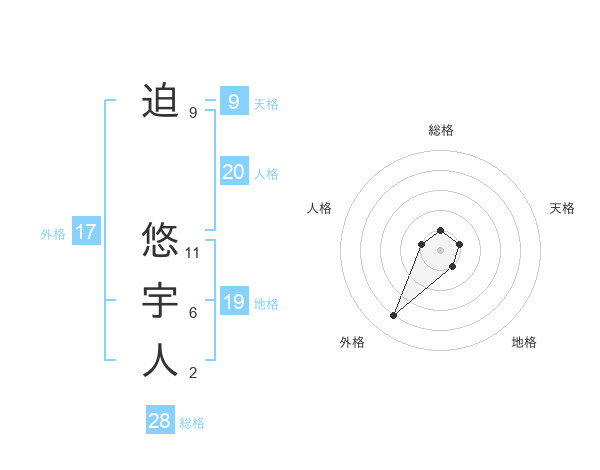 迫 悠宇人さんの外格は17画の4点!