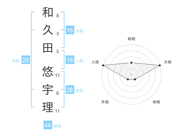 和久田 悠宇理さんを姓名の画数から五運を鑑定
