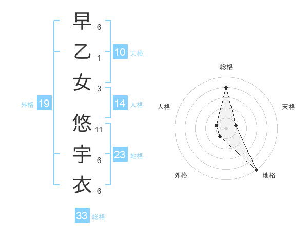 早乙女 悠宇衣さんを姓名の画数から五運を鑑定