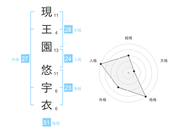 現王園 悠宇衣さんを姓名の画数から五運を鑑定