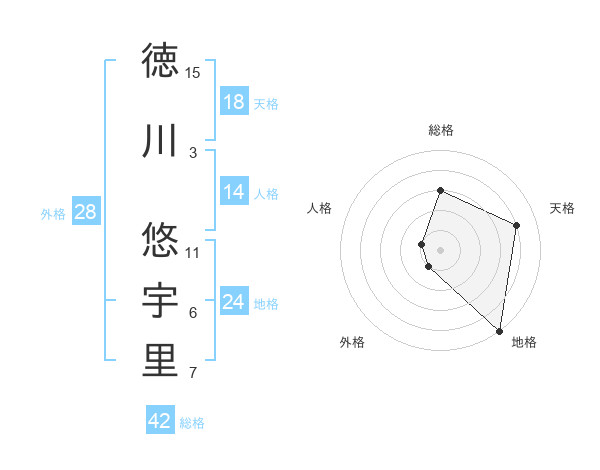 徳川 悠宇里さんを姓名の画数から五運を鑑定