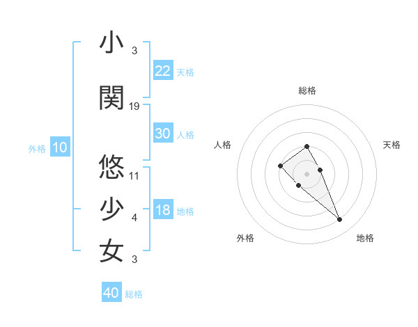 小関 悠少女さんを姓名の画数から五運を鑑定