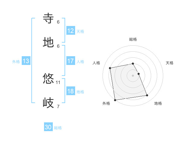 寺地 悠岐さんの総格は30画の2点!