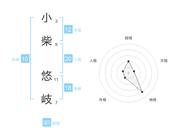 小柴 悠岐さんの総格は30画の2点!