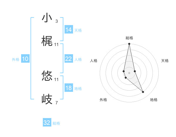 小梶 悠岐さんの総格は32画の5点!