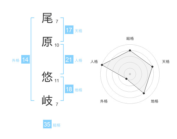 尾原 悠岐さんを姓名の画数から五運を鑑定