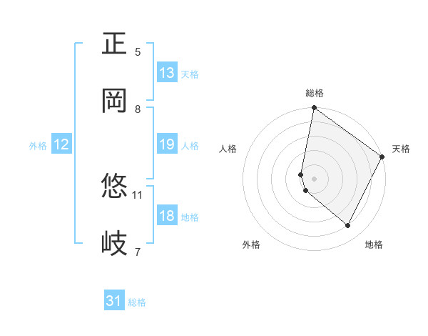 正岡 悠岐さんの天格は13画の5点!