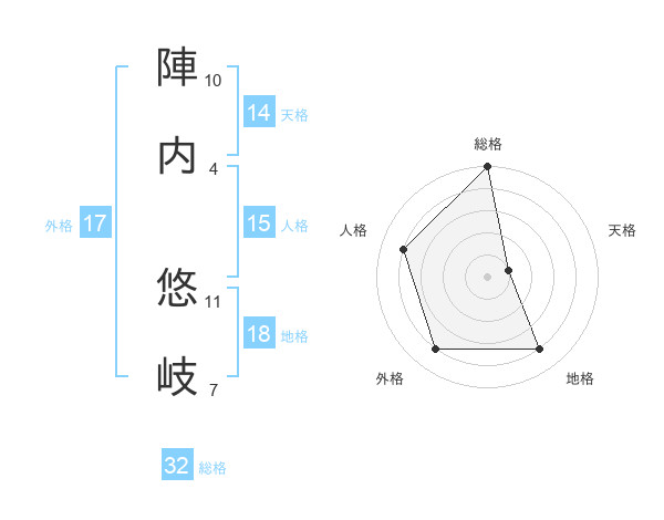 陣内 悠岐さんの総格は32画の5点!