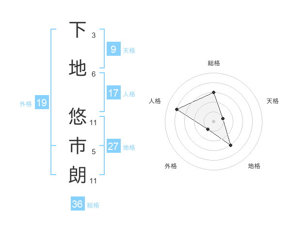 下地 悠市朗さんを姓名の画数から五運を鑑定