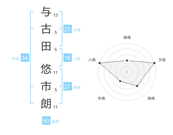 与古田 悠市朗さんを姓名の画数から五運を鑑定