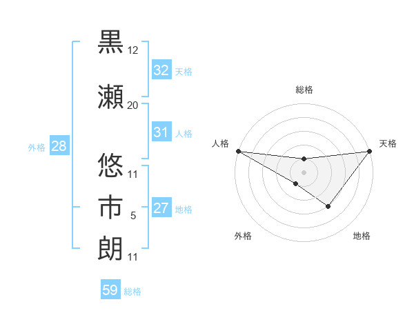 黒瀬 悠市朗さんを姓名の画数から五運を鑑定