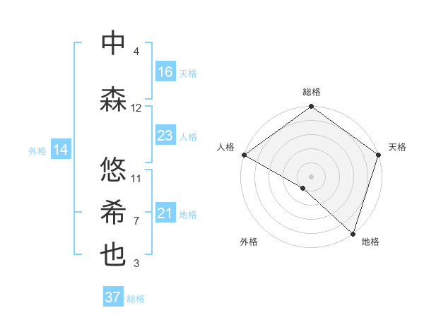 中森 悠希也さんを姓名の画数から五運を鑑定