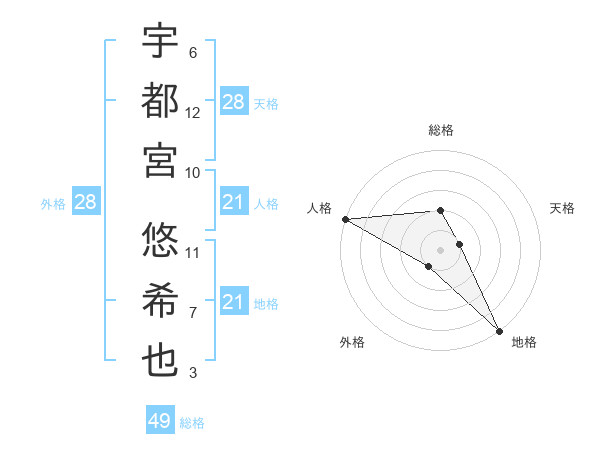 宇都宮 悠希也さんを姓名の画数から五運を鑑定