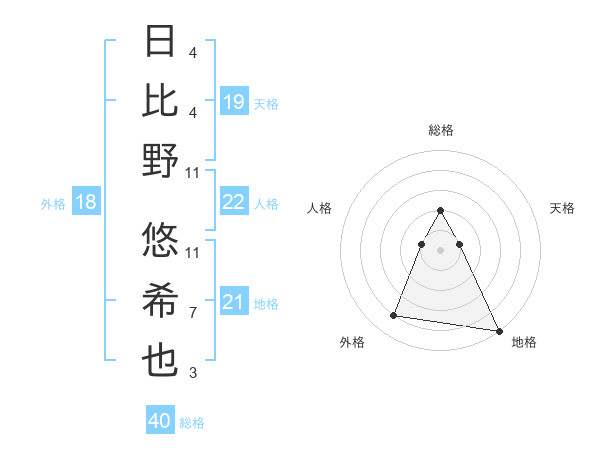 日比野 悠希也さんを姓名の画数から五運を鑑定