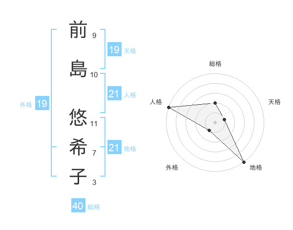 前島 悠希子さんの総格は40画の2点!