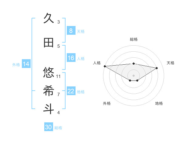 久田 悠希斗さんの天格は8画の4点!