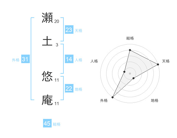 瀬土 悠庵さんを姓名の画数から五運を鑑定