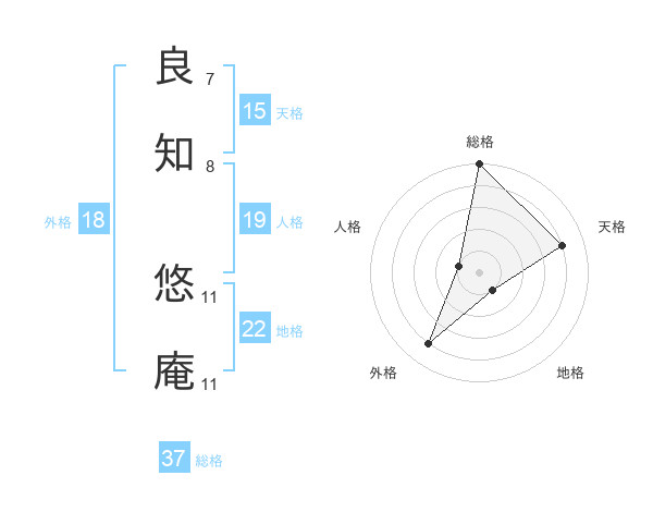 良知 悠庵さんの総格は37画の5点!