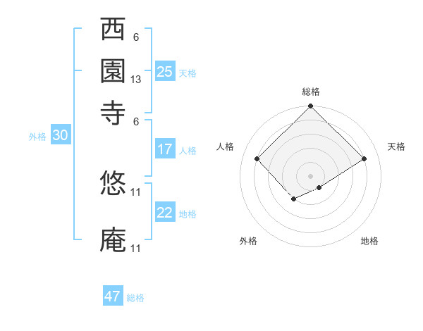 西園寺 悠庵さんの総格は47画の5点!