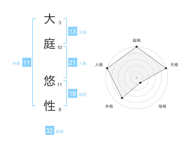 大庭 悠性さんを姓名の画数から五運を鑑定