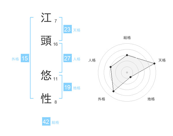 江頭 悠性さんの総格は42画の3点!