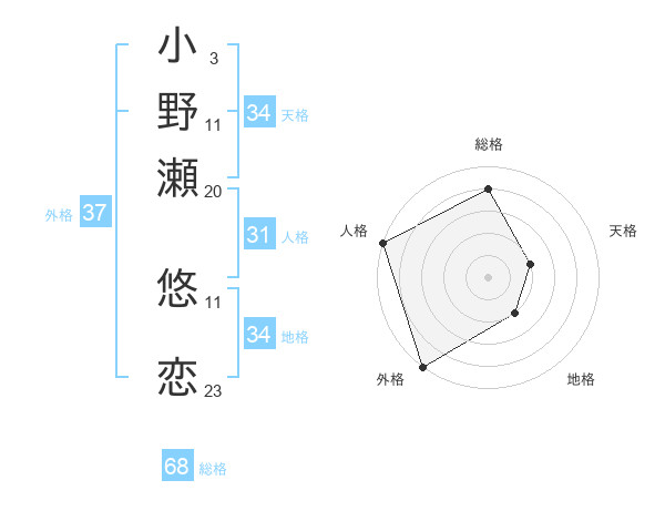 小野瀬 悠恋さんを姓名の画数から五運を鑑定