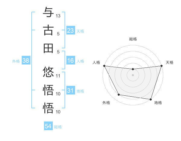 与古田 悠悟悟さんを姓名の画数から五運を鑑定