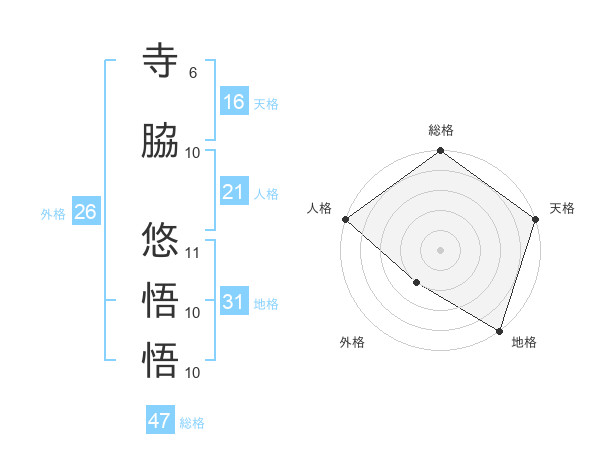 寺脇 悠悟悟さんを姓名の画数から五運を鑑定
