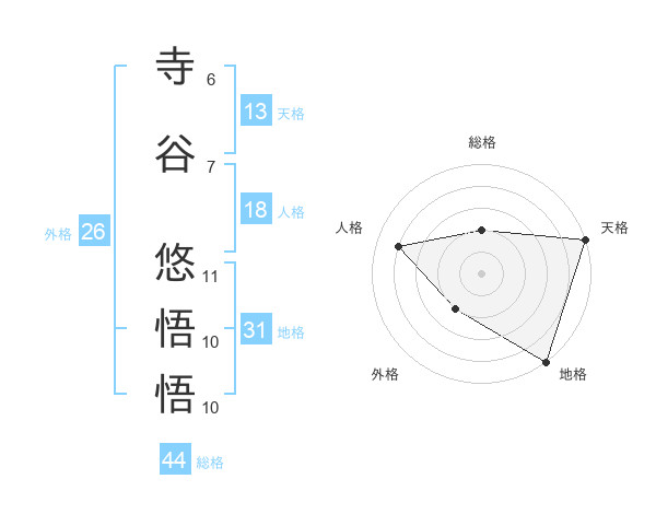寺谷 悠悟悟さんの地格は31画の5点!