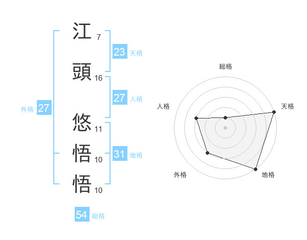 江頭 悠悟悟さんを姓名の画数から五運を鑑定