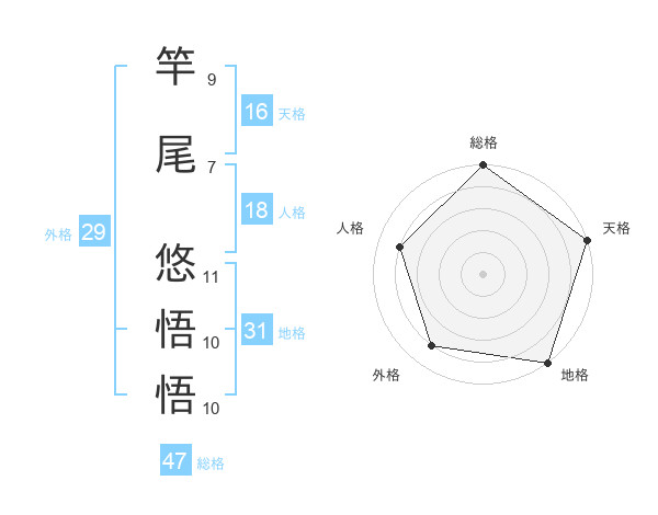 竿尾 悠悟悟さんを姓名の画数から五運を鑑定