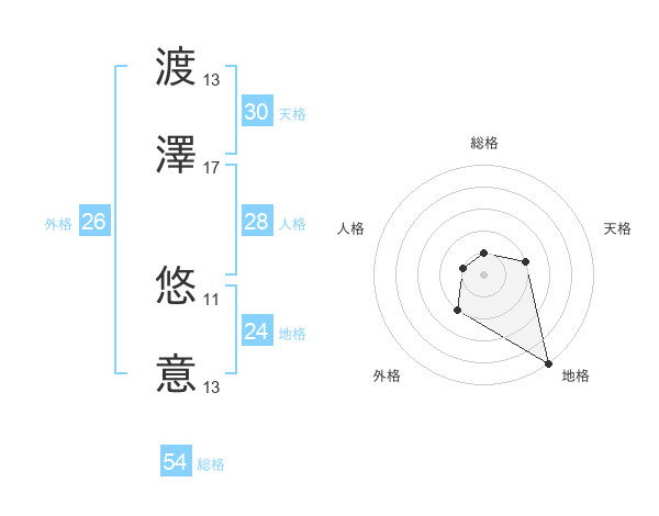 渡澤 悠意さんの総格は54画の1点!