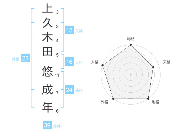 上久木田 悠成年さんを姓名の画数から五運を鑑定